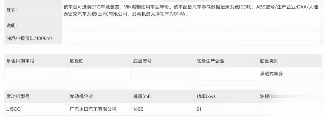 从之前的申报信息中获悉,新款飞度的长宽高分别为416916941537毫米,轴距为2530毫米,轮胎规格为185/60R15 84H,排放执行标准:GB18352.6-2026国VI,最高车速188km/h,新车将会配备10.1英寸中控屏,支持苹果Carplay、华为Hicar和百度Carlife手机互联和映射等功能(以上市公布信息为准)。