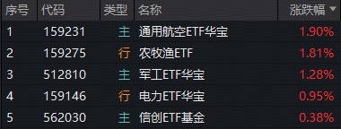 盘面上,农业概念活跃,种业板块多股涨停,全市场唯一农牧渔ETF(159275)逆市大涨1.81%;军工快速反击,军工ETF华宝(512810)、通用航空ETF华宝(159231)场内双双大涨超1%;AI算力引爆电力需求,电力电网板块继续活跃,“HALO”核心资产——电力ETF华宝(159146)场内反包收涨近1%,创上市收盘新高。下跌方面,券商股大面积下跌,券商ETF(512000)场内价格跌逾2%。