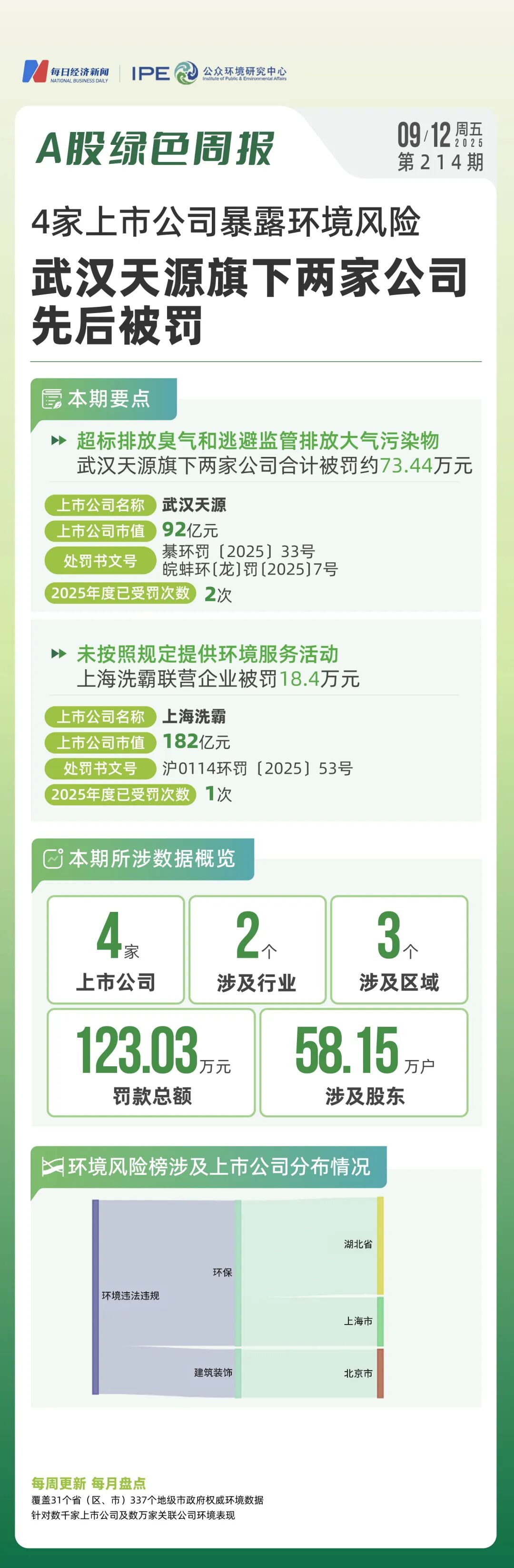 2025年9月第二周,哪些上市公司的环境保护与信披责任亮起了红灯?且看A股绿色周报第214期。